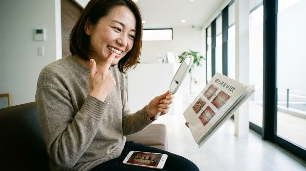 信頼できる歯科医院では、治療前後の比較写真を患者様にお見せすることがあります。自分の口元がどれだけ変化したかを客観的に確認できるため、治療の効果を実感しやすくなります。